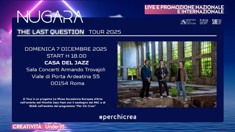 DOMENICA 7 DICEMBRE 2025 alle 18:00 i Nugara presenteranno il loro nuovo album “The Last Question” sul prestigioso palco della Casa del Jazz di Roma.
