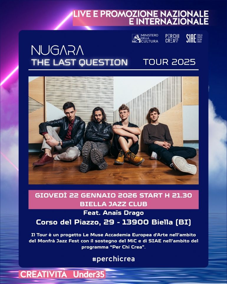 Giovedì 22 GENNAIO alle 21:30 i Nugara presentaranno il loro nuovo album “The Last Question” sul palco del Biella Jazz Club presso il Palazzo Ferrero (Biella). Il concerto vedrà la partecipazione come ospite della violinista Anaïs Drago, già presente nel loro precedente album “Point of Convergency”.